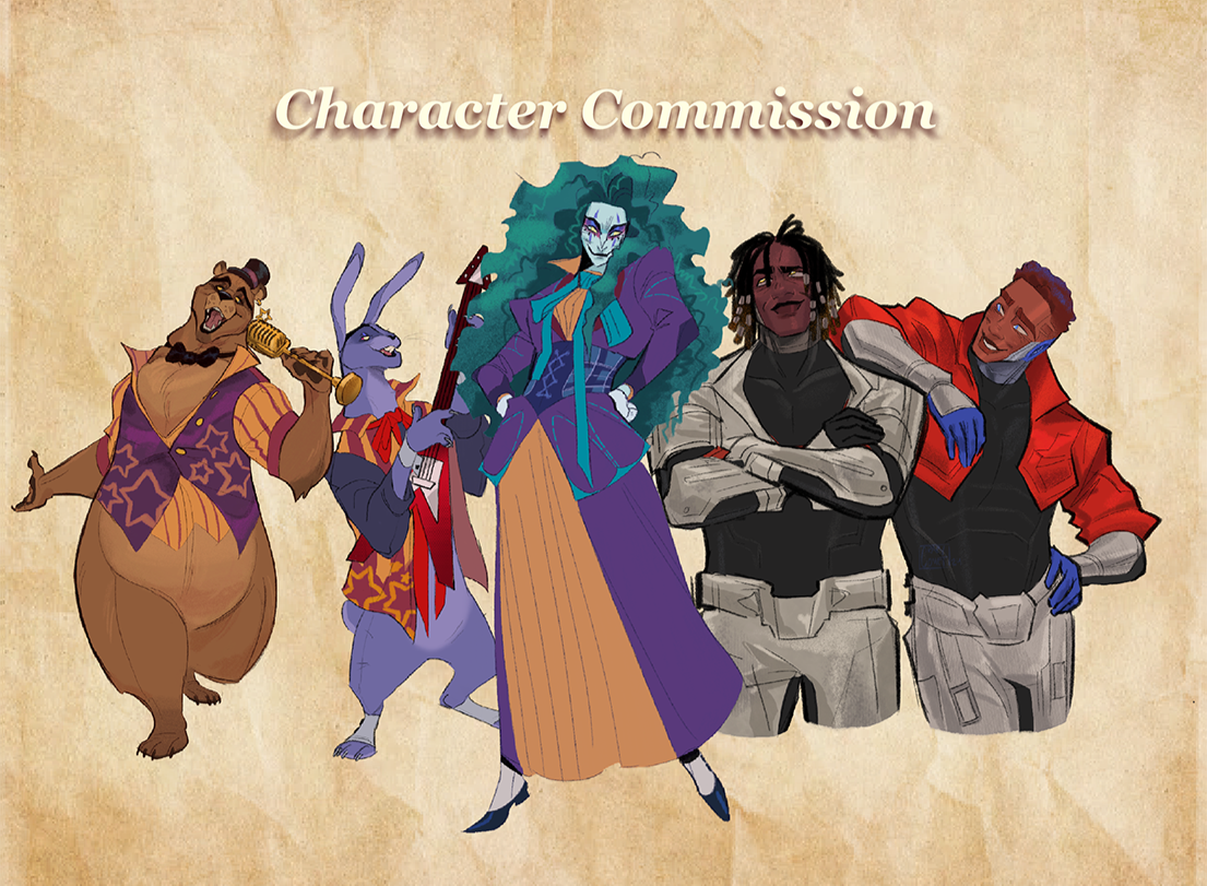 These will be character commissions meaning there will be no backgrounds besides solid color